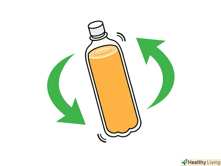 Випускайте гази кілька разів на день. коли цукор розчиниться, відкрутіть кришку, щоб випустити тиск, який накопичився всередині пляшки. Потім знову закрутіть кришку. Повторюйте цей процес хоча б три рази на день наступні два тижні, щоб пляшка не вибухнула.- Через два тижні зменшіть цю кількість до одного разу на день, так як більша частина цукру вже буде перетворена, а значить, суміш буде виділяти менше вуглекислого газу. [3]