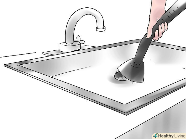 Пропилососьте діспоузер.- Для того щоб видалити дрібні осколки скла скористайтеся пилососом для вологого прибирання. Просто помістіть кінець шланга над диспоузером і дозволите пилососу працювати до тих пір, поки не пропаде шум від всмоктуваного скла. Якщо раковина порівняно суха, то ви можете скористатися звичайний пилососом, просто оберніть кінець подовжувальної трубки нейлоновим панчохою (закріпіть його гумкою).
