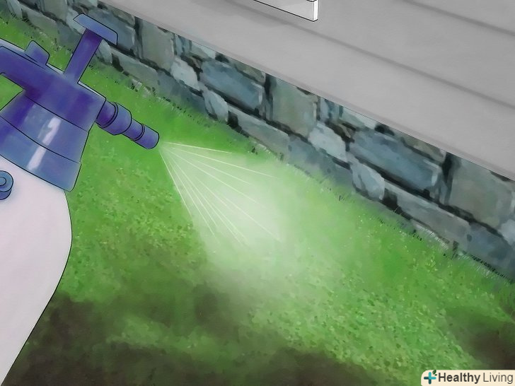 Розпилюйте пестициди навколо будинку. пестициди навколо основи будинку послужать певним бар'єром, що запобігає вторгнення павуків-вовків всередину.- Не розсипайте хмиз. Якщо вам все ж не вдалося цього уникнути, викиньте його, оскільки спалювати оброблені пестицидом дрова, вельми небезпечно.