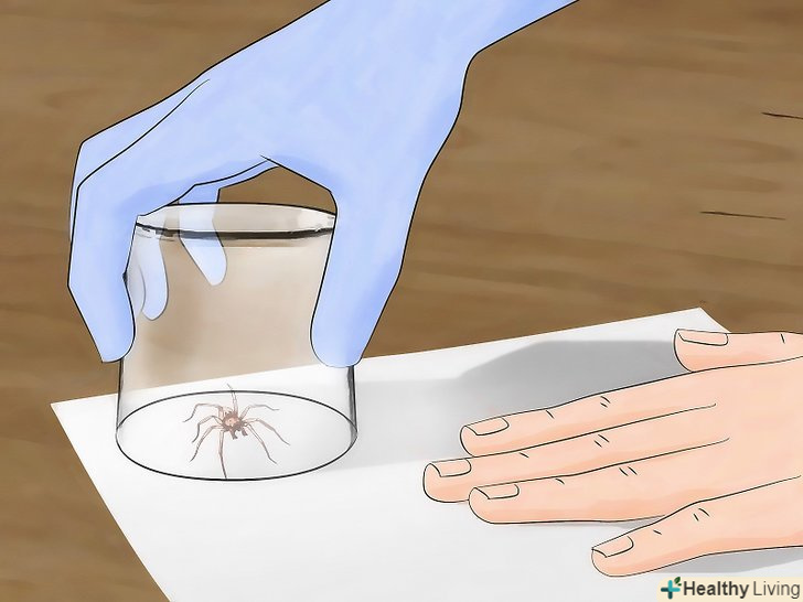 Ловіть павуків-вовків і кладіть в контейнер. коли знайдете павука, накрийте його контейнером або чашкою; посуньте під чашу важкий, твердий шматок дошки. Будьте гранично обережні, щоб павук не виповз з посудини.- Випустіть павука на волю якомога швидше. Переконайтеся, що ви випустили його досить далеко від вашого будинку так, щоб він не поповз назад всередину, як тільки вивільниться.