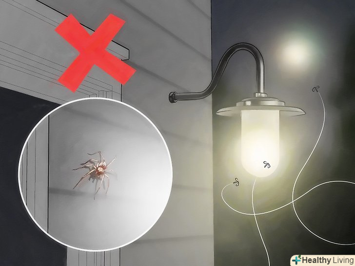 Приберіть або замініть лампи зовнішнього освітлення. навколо включених в нічний час ламп, скупчуються безліч мух, молей та інших комах, які стають, в свою чергу, ласим шматочком для павуків-вовків.- Залишайте лампи вимкненими якомога довше, щоб обмежити число комах біля будинку.