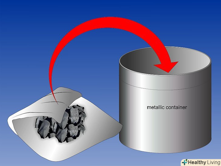 Утилізуйте вугілля. Дайте вугіллю дві доби на те, щоб повністю охолонути, а потім, загорніть його в товсту алюмінієву фольгу і покладіть у вогнетривкий контейнер. Їм може бути металеве відро або жерстяна банка.- Переконайтеся, що вогнетривкий контейнер знаходиться далеко від займистих матеріалів на зразок бензину, ацетону, тирси або паперу.