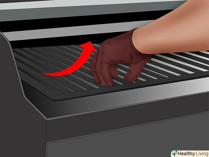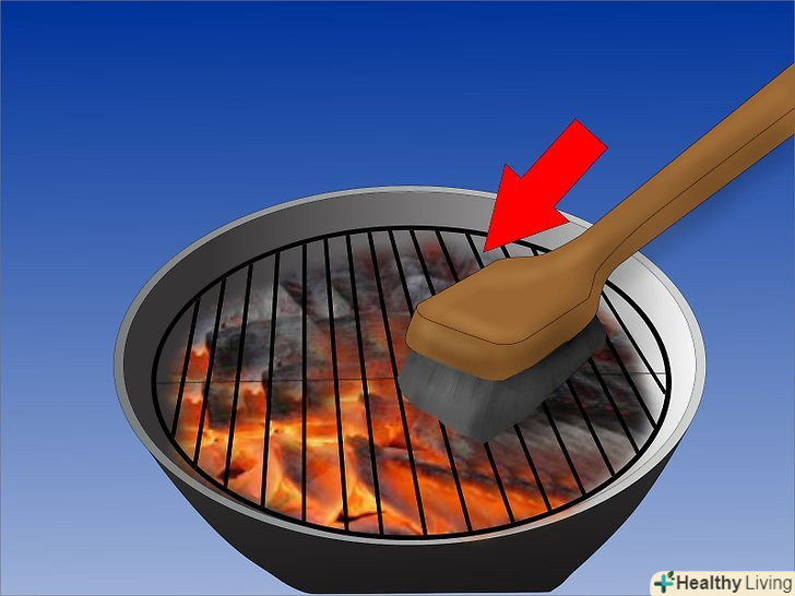 Підтримуйте систематичний режим чищення. після кожного використання чистіть решітку гриля щіткою. Прибирайте всі шматочки і частинки їжі.- Приділіть особливу увагу зоні навколо брикетів або лавових каменів, тому як їжа часто падає крізь грати. Усуньте всі частинки їжі і протріть все ганчіркою.