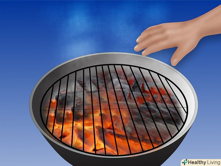 Розігрійте гриль. перед тим, як почати готувати, запаліть Вугільні брикети, покладіть решітку на вогонь і накрийте кришкою. Дайте грилю прогрітися протягом 10-20 хвилин.- Даючи грилю прогрітися, ви розтопіть старий жир на решітці і полегшите собі процес чищення.