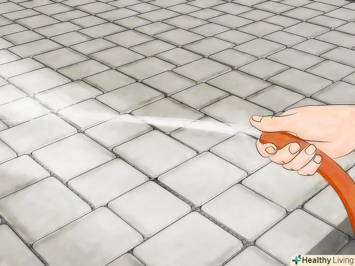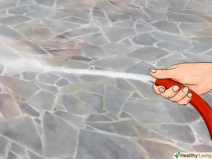 Ретельно промийте внутрішній дворик. будьте обережні на ділянках поруч з рослинністю, так як мильний розчин може вбити рослини.