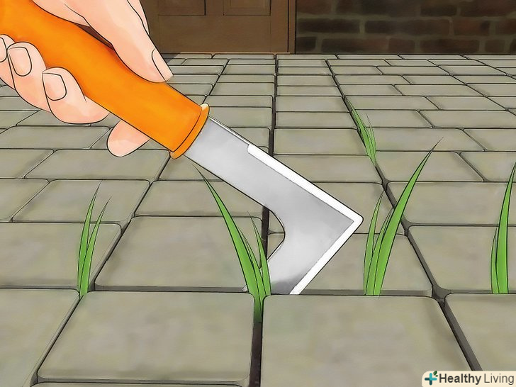 Позбавтеся від бур'янів. Бур'яни не покращують зовнішній вигляд внутрішнього дворика, тому вирвіть великі бур'яни руками, а маленькі між плитками виколупайте великим ножем. Можете розпорошити гербіциди або посипати сіль між плитками, щоб точно вбити бур'яни.