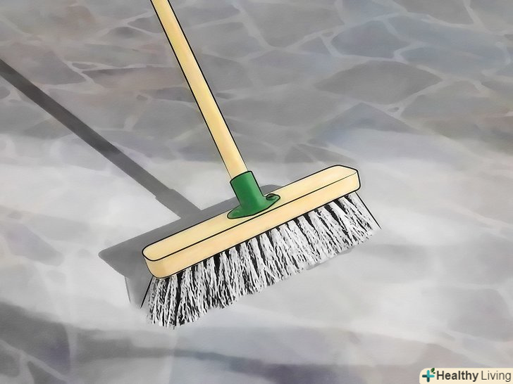 Енергійно потріть весь внутрішній дворик жорсткою щіткою. Якщо ви використовуєте хлорний відбілювач, будьте обережні, очищаючи поруч з рослинами або травою, так як відбілювач здатний їх вбити. Якщо ви використовуєте нерозбавлений відбілювач, залийте ним дворик на кілька хвилин або годин (в залежності від ступеня забруднення). Якщо ви використовуєте господарське мило, просто налийте трохи розчину у внутрішній дворик, додайте води і почніть очищення.