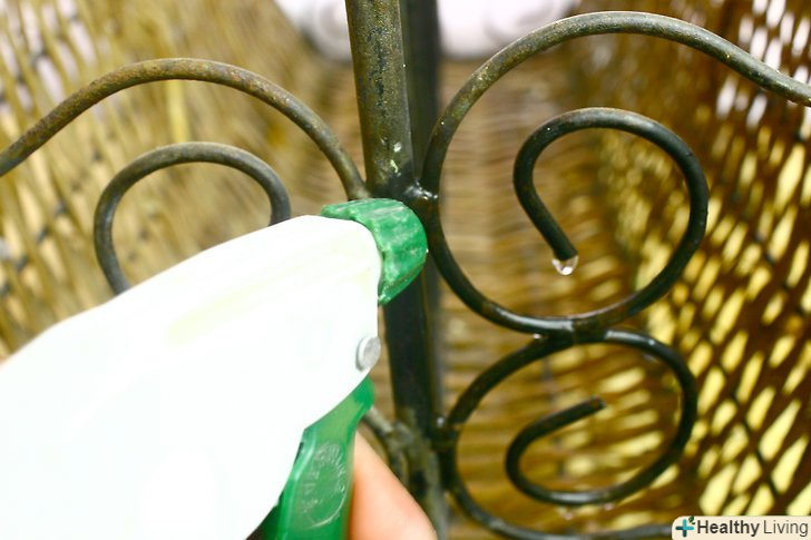 Налийте у відро або аерозольний розпилювач теплої води. Якщо ви чистите великі предмети, такі як ковані меблі, краще буде взяти відро води. Для дрібних предметів вистачить і розпилювача.