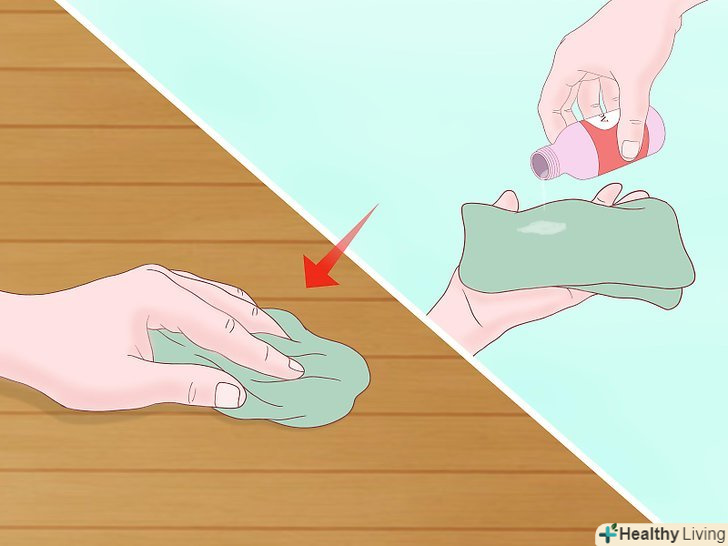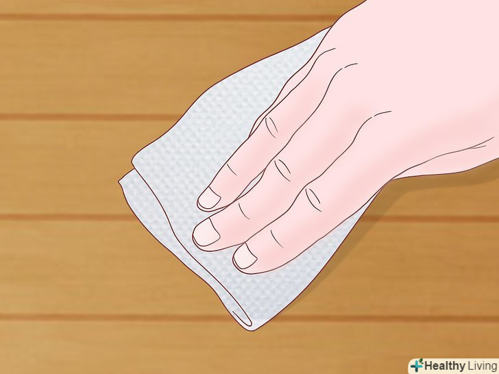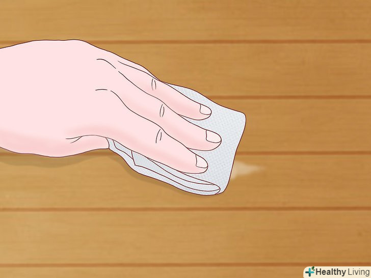 Видаліть всі залишилися частинки клею. виявлені на підлозі крихітні залишки клею необхідно стерти змоченою в ацетоні дрантям. Знову ж таки, використовуйте тільки кілька крапель ацетону і дійте акуратно. [5]- Ніколи не наносите рідину безпосередньо на ламінат, так як це може привести до його знебарвлення. Замість цього слід нанести кілька крапель ацетону на ганчірку, а потім протерти нею підлогу.
