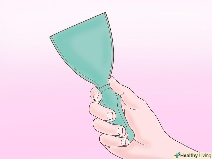Візьміть скребок. чим він м'якше, тим краще. Вам потрібен скребок, який не залишить слідів на підлозі. М'який пластиковий шпатель відмінно підійде для цих цілей, а металевим ножем ви можете подряпати ламінат.- Через брак під рукою пластикового шпателя ви можете використовувати ніж для масла, однак перед застосуванням слід обернути його м'якою тканиною.