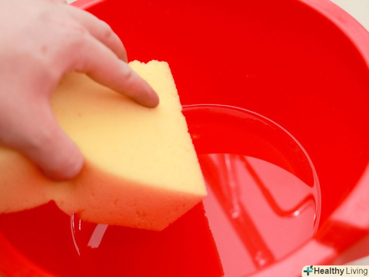 Змочіть розчином губку. злегка змочіть водним розчином нашатирного спирту губку для посуду. Губка повинна бути вологою, але не мокрою — вичавіть з неї зайву рідину.