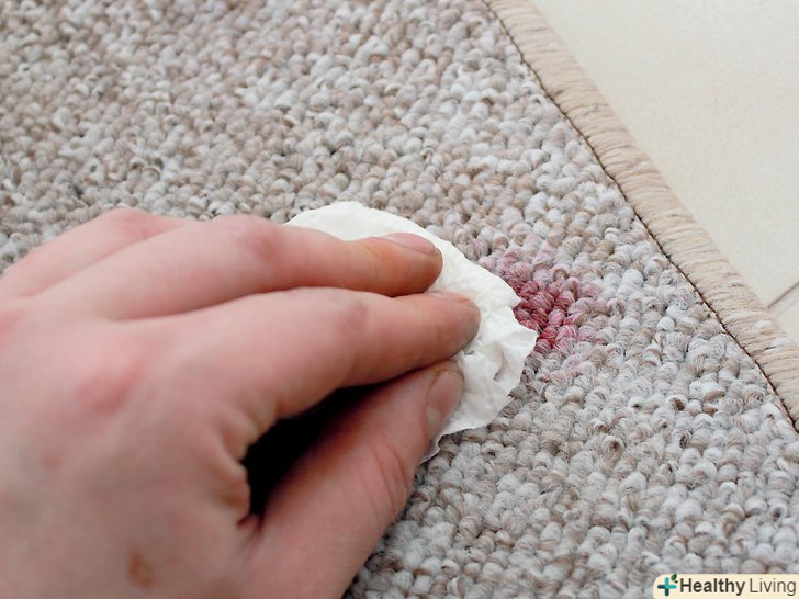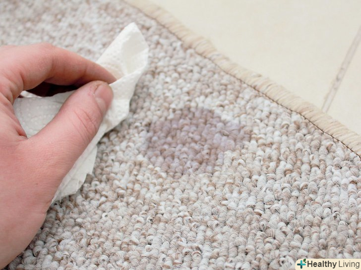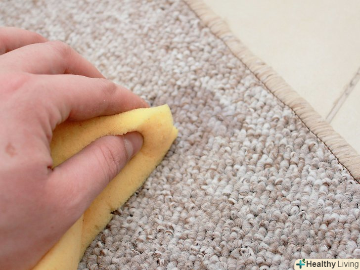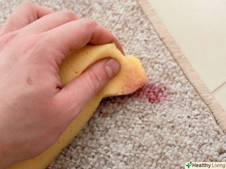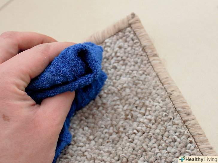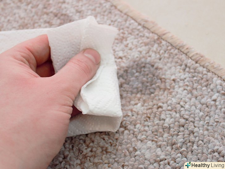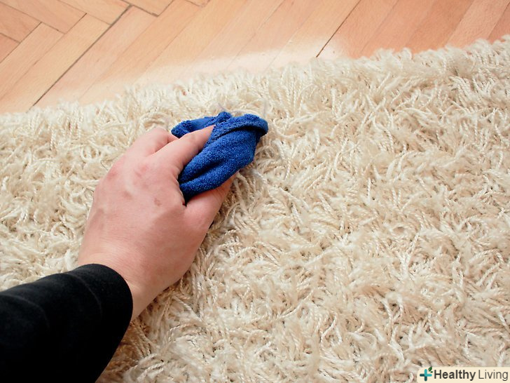 Промокніть пляму вологою ганчіркою. мабуть, найлегше вивести плями від розчинних у воді речовин — часто досить просто промокнути килим мокрою ганчіркою. Це стосується плям від харчових барвників, газованих напоїв, молока, більшості спиртних напоїв і багато чого іншого. [1] для початку змочіть теплою водою ганчірку або паперовий рушник. Міцно притисніть Рушник до плями. Тепла вода вбере частину бруду.- Це краще зробити якомога раніше. Пляма буде важче вивести після того, як воно підсохне.