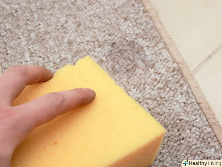 Потріть губкою пляму. Короткими круговими рухами потріть вологою губкою забруднену ділянку. Почніть з зовнішнього краю плями і поступово просувайтеся до його середини: таким чином ви не розмажете бруд ще ширше. [5]