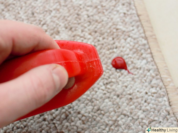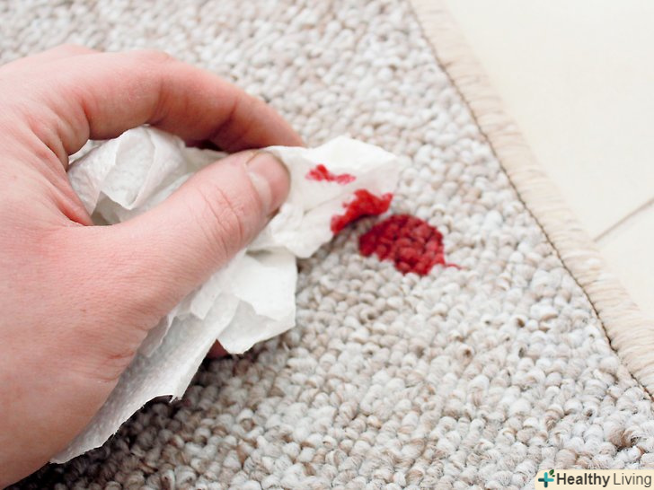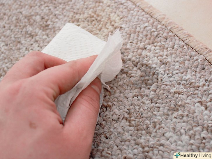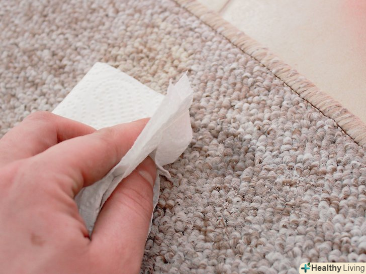 Промокніть пляму паперовим рушником. технічні рідини (наприклад, чорнило або побутові засоби) можуть сильно зіпсувати зовнішній вигляд килима. На щастя, як і у випадку з більшістю інших плям, можна відразу ж промокнути забруднене місце паперовими рушниками і видалити зайву рідину.