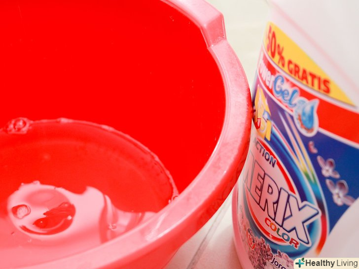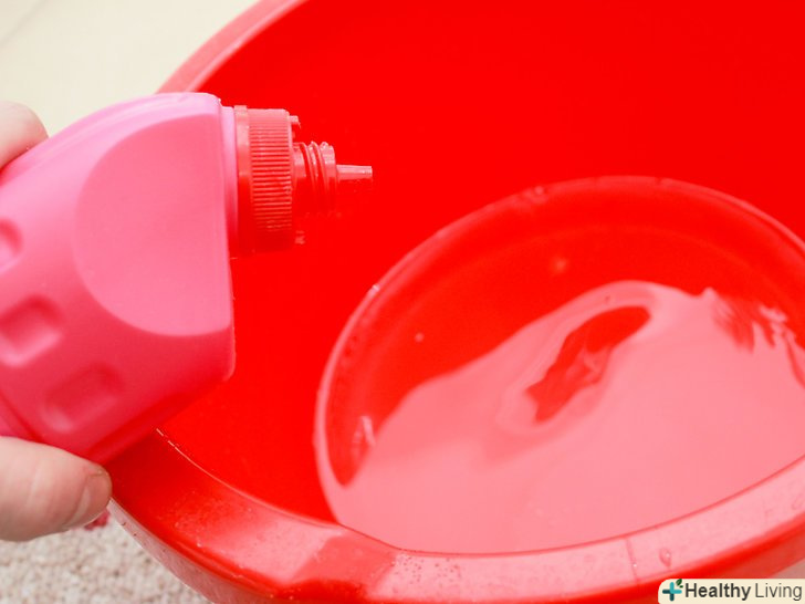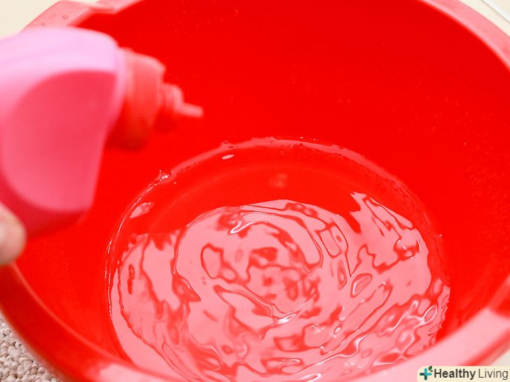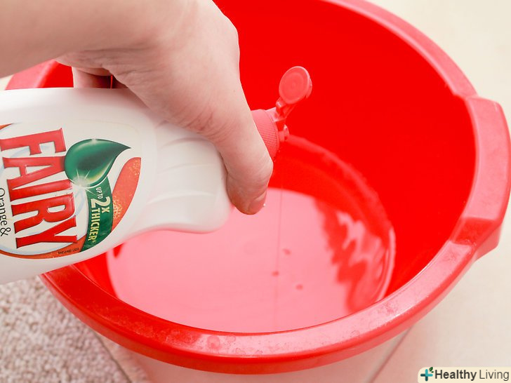 Розведіть 1/4 чайної ложки (1,3 мілілітра) миючого засобу без відбілювача (можна використовувати також білий оцет) в 1 літрі води. перемішайте воду, щоб вийшов однорідний розчин. Це домашнє засіб прекрасно підходить для того, щоб вивести подібні плями. [2]