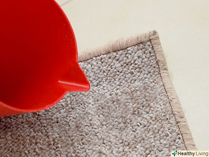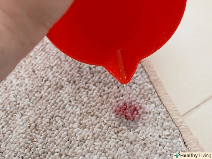 Нанесіть на килим теплу воду. розчинна у воді бруд найкраще видаляється теплою водою. Змочіть забруднене місце невеликою кількістю води.