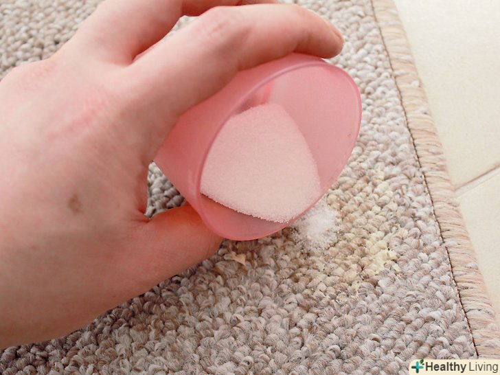 Пропилососьте забруднене місце. пройдіться по плямі пилососом і зберіть сміття і залишки порошку або харчової соди. Ви з легкістю зможете видалити залишився твердий сміття: досить протягом декількох секунд пропилососити очищене місце. Якщо на килимі залишиться бруд, можливо, пляма слід обробити ще раз.