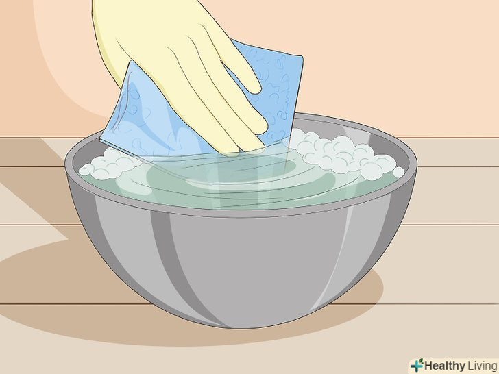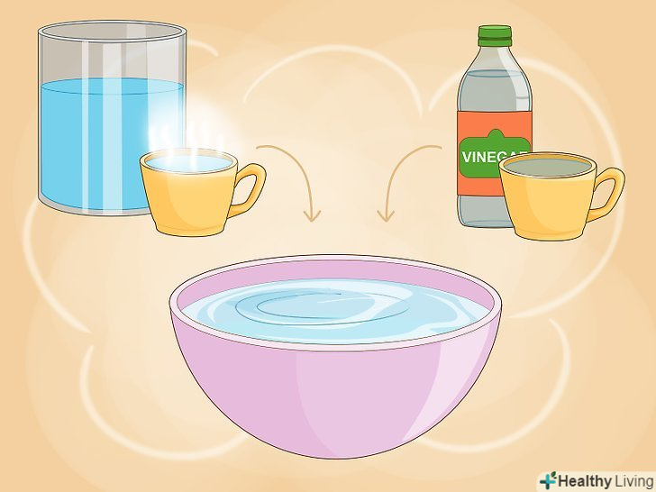 Змочіть розчином ганчірку. занурте ганчірку в суміш оцту і води. Будьте обережні, щоб не обпектися гарячою водою.