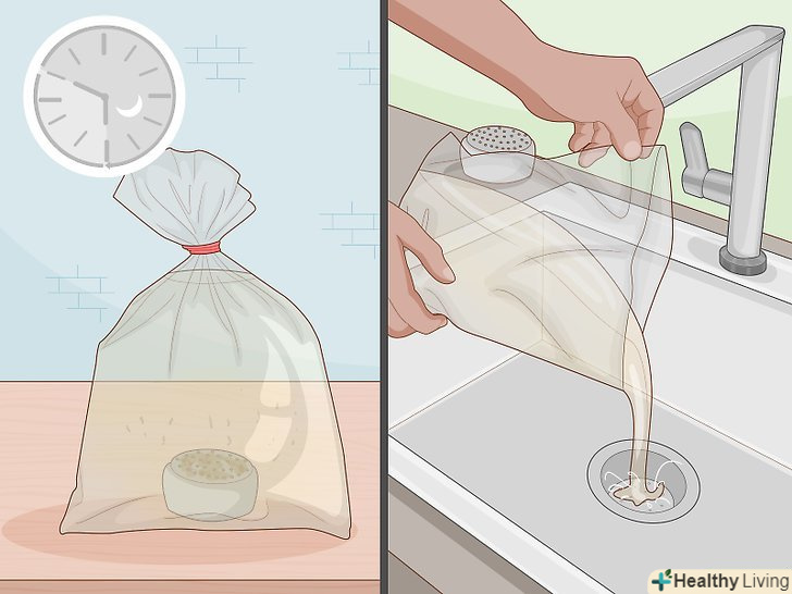 Дістаньте розпилювач з пакета на наступний ранок. залиште розпилювач на ніч відмокати в оцті. Вранці дістаньте його, вилийте оцет і викиньте використаний пакет. [16]