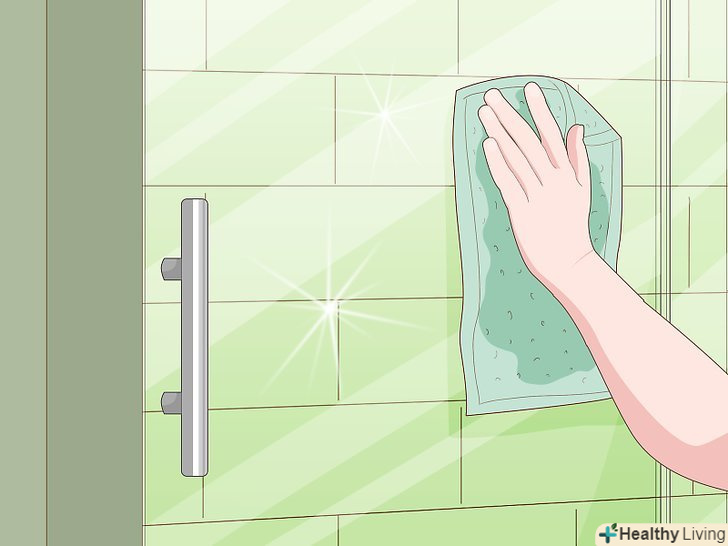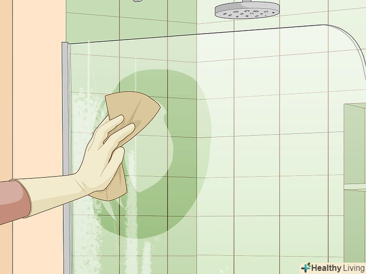 Витріть Чистячий засіб м'якою ганчіркою. не тріть душові двері щіткою або дротяною мочалкою, так як її легко подряпати. Видаліть миючий засіб і бруд за допомогою м'якої ганчірки, наприклад з мікроволокна. [20]
