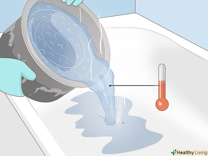 Очистіть зливний отвір від волосся. зніміть зі зливного отвору решітку або використовуйте довгий тонкий предмет, наприклад в'язальний гачок. Візьміть сміттєвий пакет, щоб викинути в нього волосся. Відкрутіть решітку або просто зніміть її, в залежності від конструкції. Очистіть решітку від волосся і викиньте їх. Витягніть з решітки все волосся. [1]- Очищайте решітку зливу від волосся щотижня, щоб вона залишалася чистою. [2]
