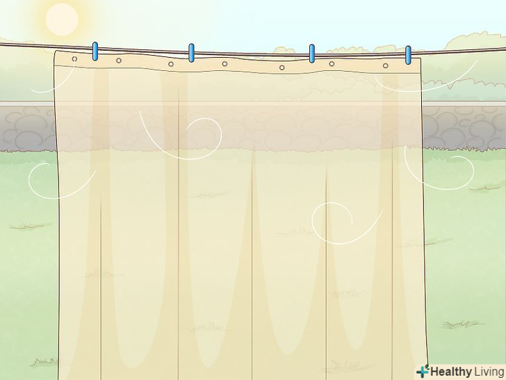 Розвісьте шторку і обважнювач або висушіть їх в барабані. Шторки і обважнювачі для душу легко мнуться, тому дотримуйтесь рекомендацій щодо сушіння. Якщо ви вирішили висушити їх в пральній машині, робіть це інтервалами по 15 хвилин, так як вони швидко висохнуть. [25]
