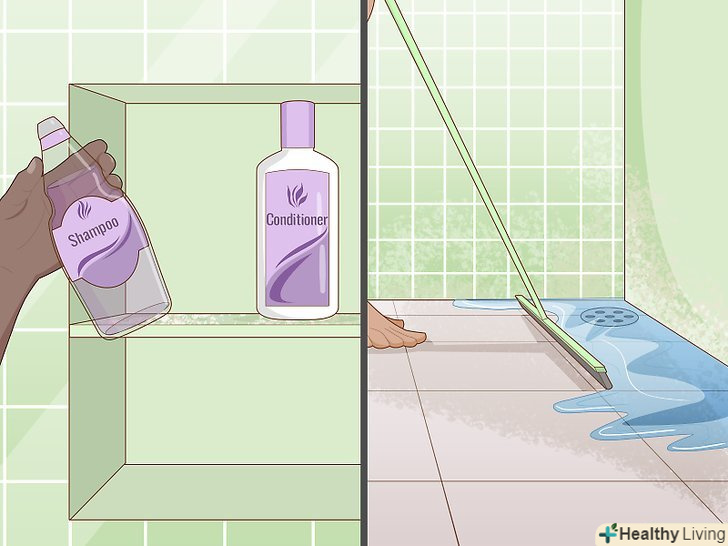 Приберіть з душової кабіни все зайве. дістаньте з душу пляшечки, мочалки, бритви, мило та інші речі. Витріть пластикові предмети, щоб видалити цвіль і зайву вологу. Викиньте порожні ємності і те, що вам не потрібно. Чи не захаращуйте душ зайвими предметами, інакше в ньому буде складніше підтримувати порядок.