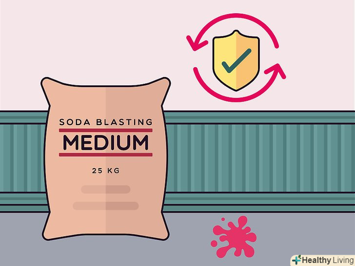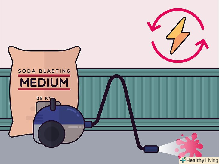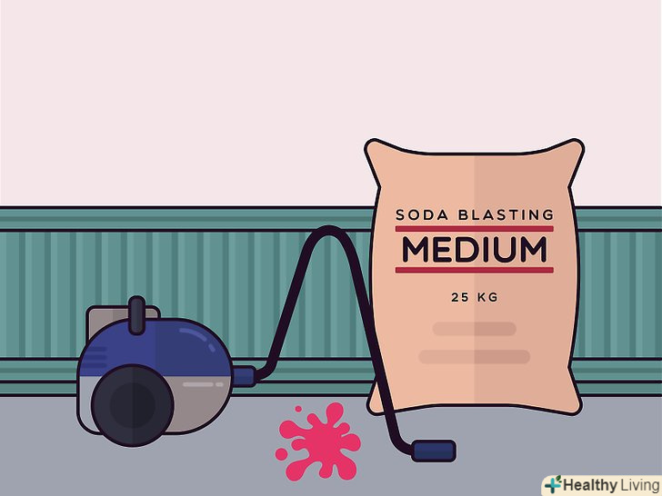 Придбайте піскоструминний апарат. щоб обробити поверхню содою, вам буде потрібно апарат з ємністю. Ви можете взяти такий апарат в оренду в магазині побутової техніки. Вам також знадобиться спеціальний бікарбонат натрію. Сода, яку ви купуєте в продуктовому магазині, занадто дрібна, щоб використовувати в піскоструминному апараті. У вас повинна бути можливість придбати відповідний порошок там же, де ви будете брати на прокат апарат. Ви також можете замовити порошок по інтернету.- Більшість стандартних піскоструминних апаратів не можуть працювати з содою. Щоб використовувати бікарбонат натрію, вам доведеться знайти спеціальний апарат.