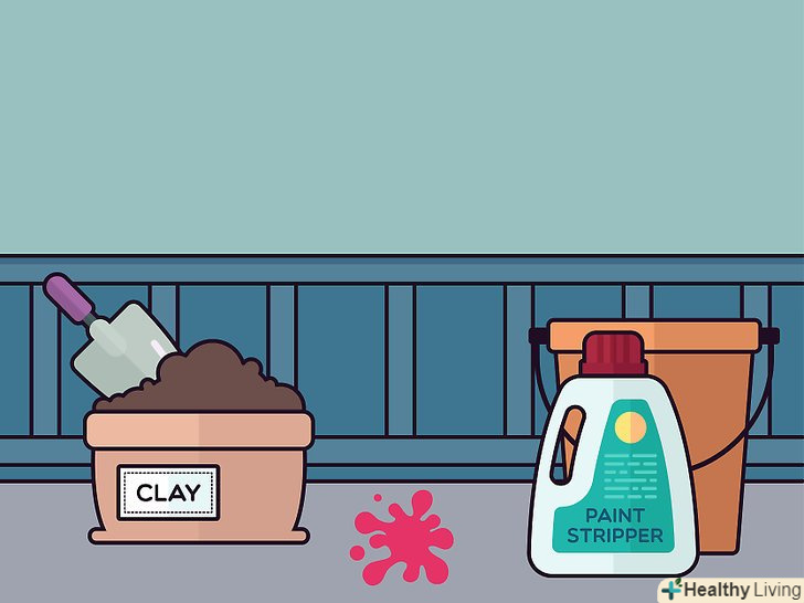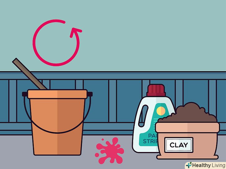 Змішайте розчинник з абсорбуючим матеріалом. зробіть пасту з глиною або наповнювачем для котячих туалетів. Залежно від консистенції розчинника, вам може знадобитися багато глини. Абсорбуючий матеріал допоможе витягти фарбу з бетону, яку потім буде легше зішкребти.