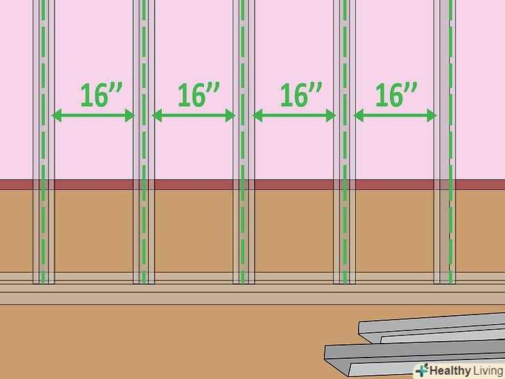 Визначте необхідну кількість профілів. як правило, використовують 1 профіль на кожні 16 дюймів (40 сантиметрів) поверхні стіни. Придбайте профіль для нижньої і верхньої частини стіни, розрахувавши необхідну площу. Додайте додатковий профіль для кожної сторони вікна або двері.