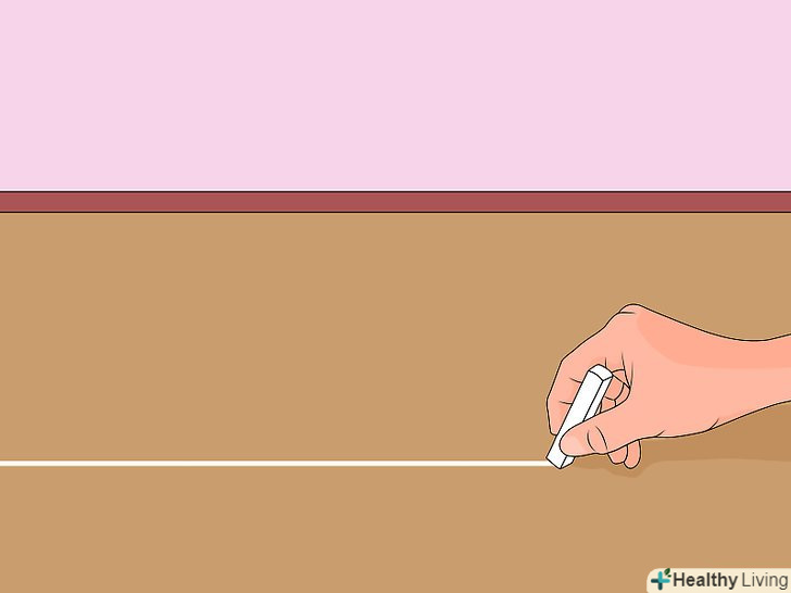- Якщо у вас немає ні схилу, ні лазерного рівня, ви можете використовувати два водних рівня. Тримаючи їх разом, притулите кінець одного до підлоги, а другого до стелі. Переконайтеся, що обидва рівні вертикальні. Зробіть відповідні позначки на підлозі та стелі.