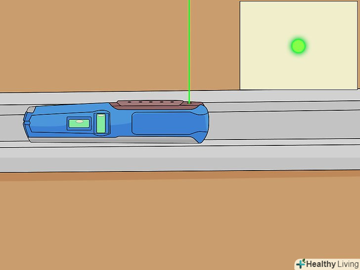Виставте рівень. щоб правильно виставити вертикаль, ви можете використовувати схил або лазерний рівень:- Для використання лазерного рівня, просто встановіть його на підлогу і включіть. Його лазер повинен бути спрямований в стелю. Цей лазер і буде вертикальним рівнем. Більшість будівельників для більшої зручності рекомендують використовувати саме лазерний рівень.