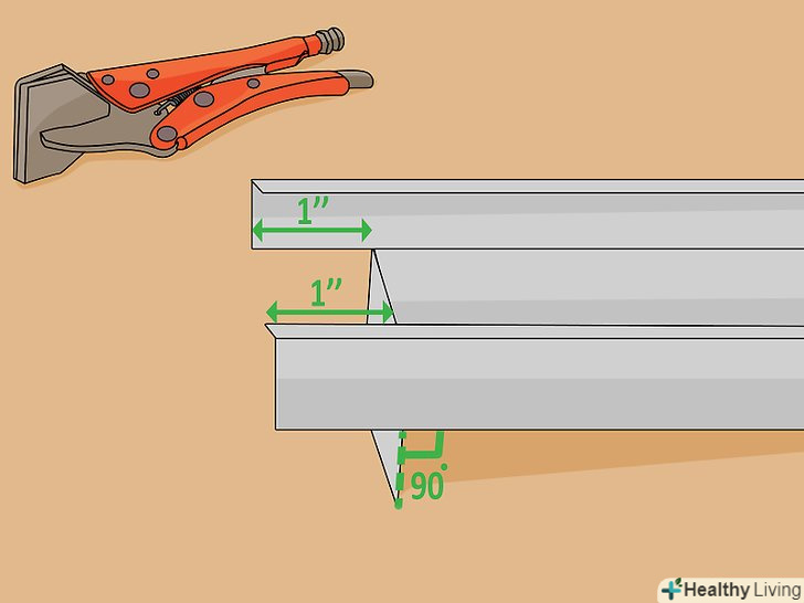 Відріжте профіль на 2 дюйми (5 см) довше, від необхідної довжини. надріжте уздовж профіль (з обох сторін) по 1 дюйму (2,5 см). За допомогою плоскогубців відігніть вниз вирізану частину на 90 градусів.