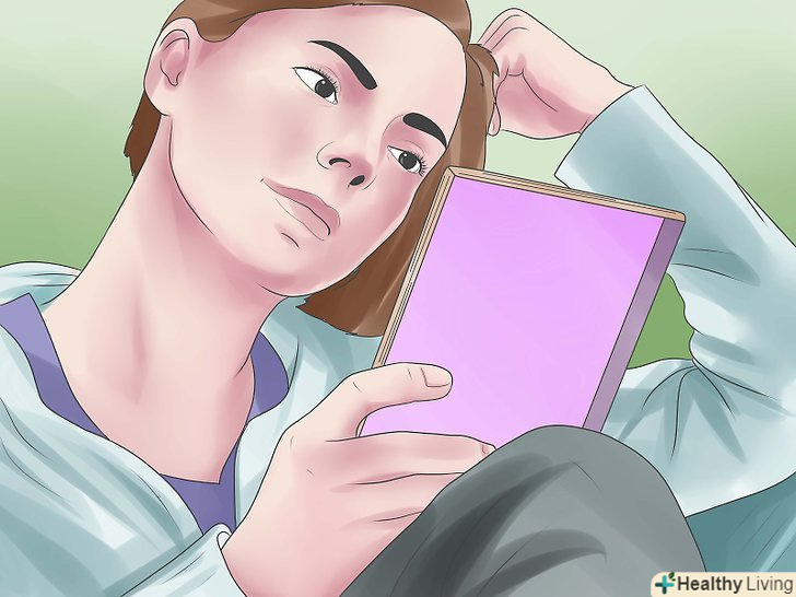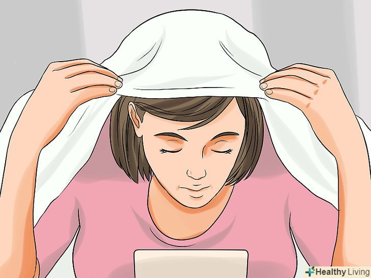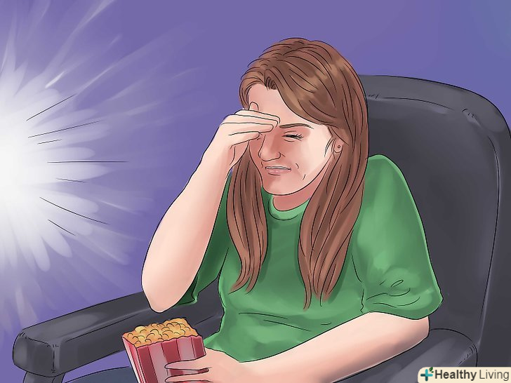 Закривайте очі в страшних сценах.якщо здається, що зараз буде щось страшне, то просто закрийте очі. Заплющіть або закрийте очі руками, кепкою, капюшоном або накрийте пледом.- Якщо ви не хочете, щоб інші помітили, то прикидайтеся, ніби ви повільно моргаєте, закриваючи очі лише на кілька секунд. Також можна сильніше насунути капюшон або кепку і прикидатися, ніби ви як і раніше дивитеся фільм.[2]