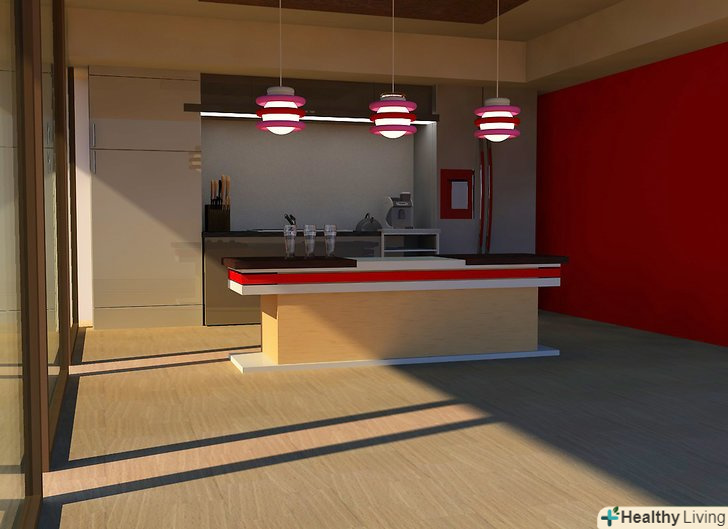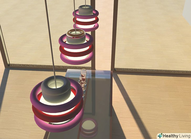 Повісьте лампу над підлогою.- Плануйте вішати світильник на висоті 210-240 сантиметрів над підлогою. Ви повинні забезпечити проміжок в 30 сантиметрів між світильником і людиною, що проходить повз нього.
