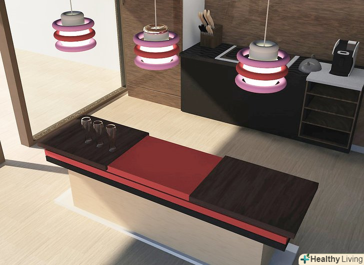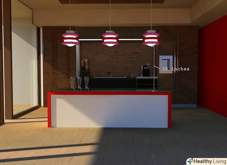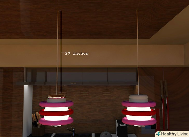 Повісьте лампу над кухонним столом або островом.- Почніть з 70-85 сантиметрів між нижньою частиною світильника і поверхнею столу. Ці розміри будуть вашими базовим виміром. Використовуйте його як основу при плануванні положення світильника.