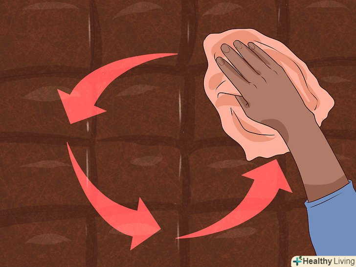 Нанесіть розчин на весь диван. занурте куточок чистої ганчірки в кондиціонуючий розчин. Круговими рухами акуратно втирайте розчин в шкіру. Залиште розчин на дивані на всю ніч.- Диван не слід ні надмірно змочувати (розчин не повинен стікати з ганчірки), ні залишати надто вологим. Надлишок вологи може призвести до пошкодження шкіри.