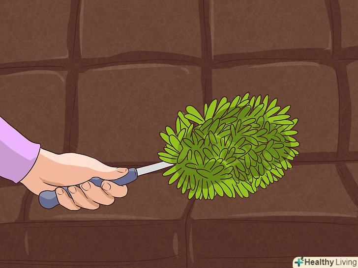 Витріть пил з дивана. протріть поверхню дивана мітелкою з пір'я або ганчіркою з мікрофібри. Перед подальшою чищенням обов'язково зметіть з дивана все сміття, щоб уникнути можливих подряпин. [2]