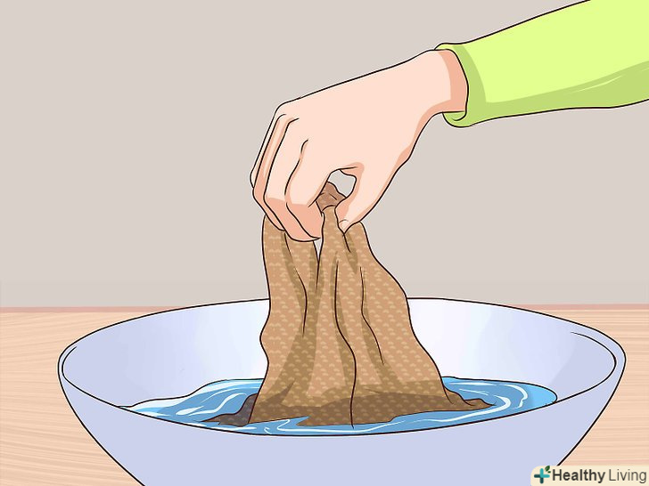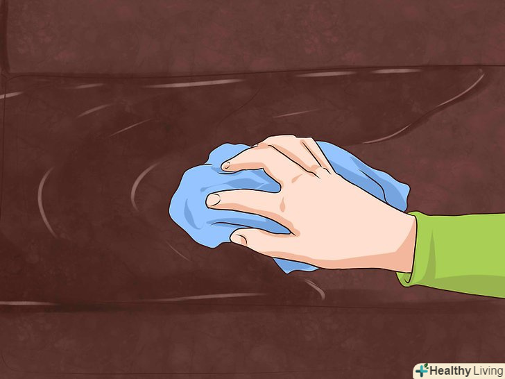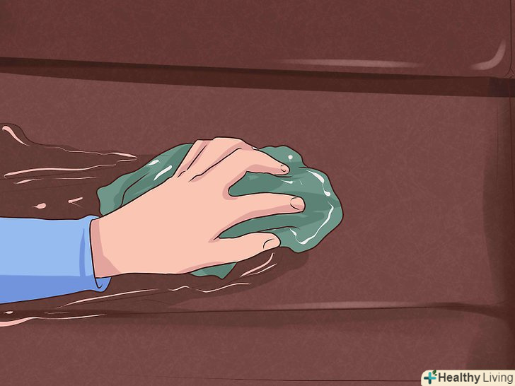 Занурте ганчірку в розчин і потім ретельно її вичавіть. ганчірка повинна бути вологою, але не мокрою. Надмірна кількість вологи може призвести до пошкодження шкіри дивана.