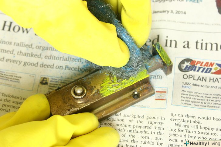 Одягніть щільні гумові рукавички і потріть відшарувалася фарбу металевою мочалкою для читки 002. використовуйте бамбукові шпажки, зубочистки або дротяну щітку, щоб потрапити у важкодоступні місця.