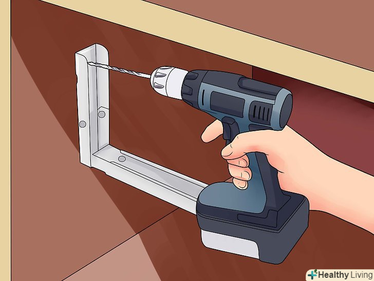 Намітьте і просвердлите отвори для кріплення. дотримуйтесь інструкцій, щоб визначити розмір і місце розташування отворів.- На нижній частині пластини повинні бути отвори під гвинти. За допомогою маркера намітьте гуртки, як мінімум, для двох отворів. По крайней мере, одне з отворів повинно доводиться на балку каркаса, щоб при кріпленні витримати вагу мікрохвильової печі.