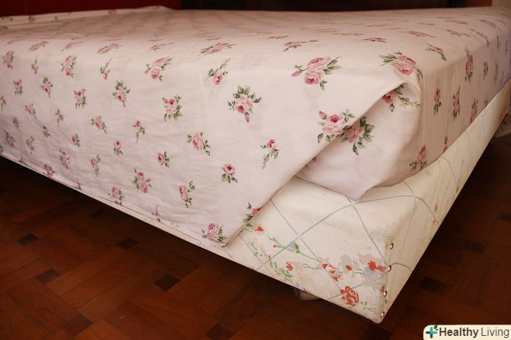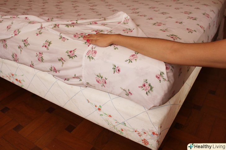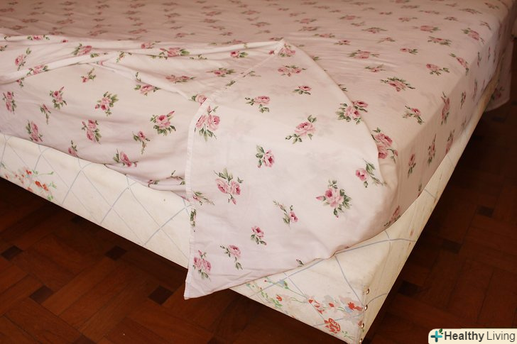 Покладіть край простирадла поверх матраца і притисніть рукою, щоб розправити його. Подоткніте все, що звисає. Коли ви приберете руку, простирадло повинна залишитися на місці. Обидва краї простирадла повинні розташовуватися вертикально (в даному випадку тільки один край).