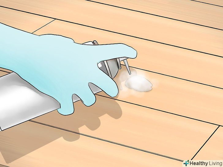 Зішкребіть охрупченную епоксидну смолу. це можна зробити скребком, або просто розбити тендітну смолу, стукнувши по ній гумовим або дерев'яним молотком. Охолоджена смола розсиплеться на осколки, обсипавшись з поверхні. Після цього акуратно зберіть осколки в совок і відразу ж викиньте їх. Можна також використовувати пилосос, щоб напевно прибрати всі мікроскопічні осколки.- Не прикладайте занадто великі зусилля, щоб не пошкодити поверхню під епоксидною смолою. Якщо смола не відокремлюється досить легко, розпиліть холодоагент ще раз, заморозивши її сильніше.