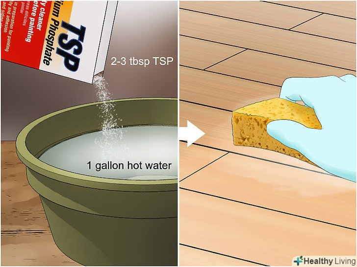 Приготуйте очищуючий розчин. після того, як ви нанесете знебарвлюючий засіб і почекаєте близько години, поки воно просочить епоксидну смолу, перед видаленням її слід обробити нейтралізатором. Приготуйте його, розвівши в невеликому відерці 2-3 столові ложки ортофосфату натрію в 4 літрах гарячої води. Епоксидну смолу можна просто полити нейтралізатором, або нанести його за допомогою губки. Зачекайте щонайменше 5 хвилин, поки нейтралізатор вбереться в смолу. [14]