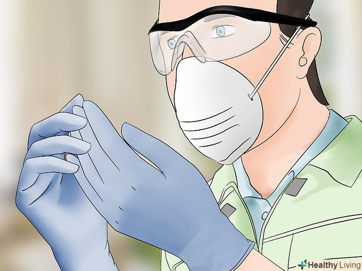 Одягніть захисні окуляри та рукавички. Хімічні реактиви можуть становити велику небезпеку для шкіри та очей. Вам будуть потрібні захисні окуляри, щільно прилягають до обличчя, без зазорів між шкірою і окулярами, через які міг би просочитися повітря. Крім того, вам знадобиться пара рукавичок з щільної гуми, що прикривають зап'ястя принаймні на 7-8 см. [9]