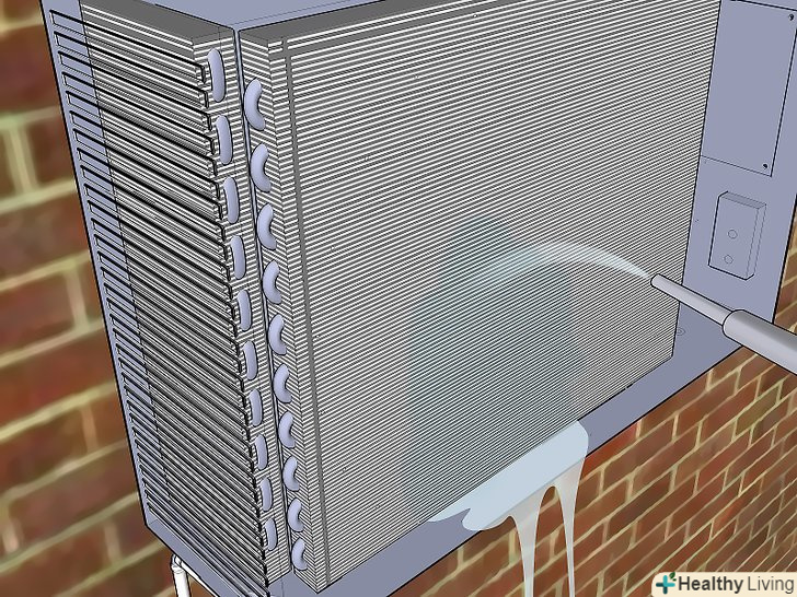 Очистіть зовнішній блок. промийте зовнішній блок садовим шлангом (легко), щоб видалити бруд зі спіралі. Видаліть листя та сміття всередині вентилятора. Для того щоб зробити це, кондиціонер повинен бути вимкненим.
