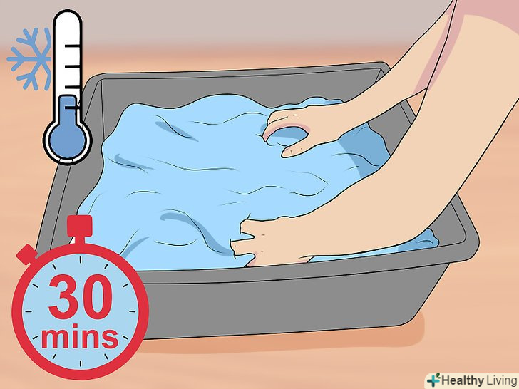 Замочіть пляму в холодній воді на 30 хвилин. Якщо одного сонячного світла виявилося недостатньо, замочіть тканину в холодній воді. Після чого дайте їй висохнути під прямими сонячними променями. [2]
