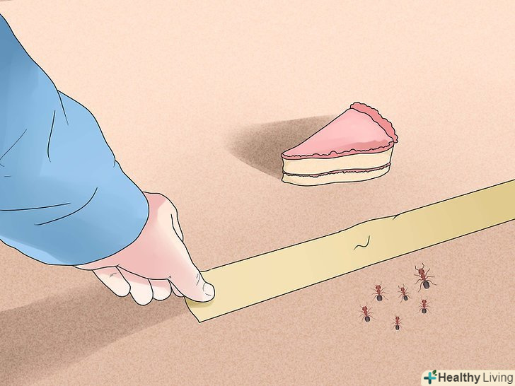 Ловіть мурах за допомогою липкої стрічки. покладіть стрічку по периметру навколо потенційних джерел продовольства. Коли мурахи приземляться на стрічці, вони застрягнуть і не зможуть полетіти. [4]- Для того щоб це було ефективним, вам необхідно помістити липку сторону стрічки якомога ближче до джерела їжі. Менш імовірно, що літаючі мурахи приземляться на стрічку, якщо це не в безпосередній близькості від джерела їжі.