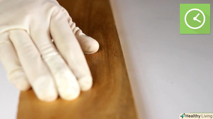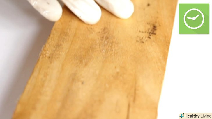 Зачекайте, поки дерево висохне. конкретний час залежить від типу деревини та використаного відбілювача. Його можна оцінити за інструкцією на упаковці з відбілювачем. Нічого не робіть з деревом до тих пір, поки воно не висохне. [11]- Обробіть поверхню наждачним папером. використовуйте наждачний папір із зерном 320 або 400. Після того як дерево висохне, акуратно потріть його наждачним папером уздовж волокон. Таким чином ви видалите грубі плями і згладите нерівні ділянки. [12]