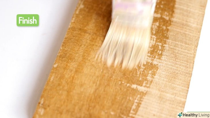 Ще раз нейтралізуйте деревину. після обробки наждачним папером повторно проведіть процес нейтралізації. Змішайте білий оцет і воду в пропорції 50:50 і нанесіть розчин на поверхню. Після цього змийте оцет чистою водою. [13]- Проведіть фінішну обробку. це необхідно для того, щоб захистити деревину і поліпшити її вигляд. Після того як дерево повністю висохне, нанесіть на нього покриття. Матеріал для фінішної обробки дерева можна придбати в магазині господарських товарів. Дотримуйтесь інструкцій щодо використання.